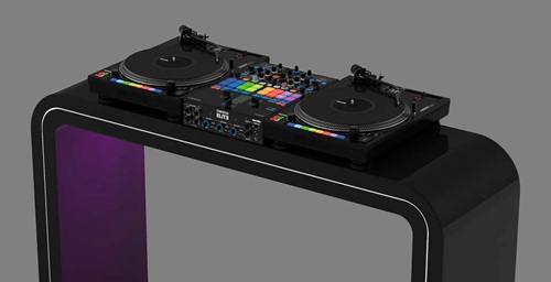 また、別売のガラス製ラップトップスタンド(Session Cube XL Laptop Stand)を取り付けることで、ノートPCをDJ機材の上に配置したいデジタルDJにも対応可能。スタンドは2本のアルミ製支持アームでテーブルにシームレスにマウントでき、見た目にも実用性にも優れたセットアップが完成します。