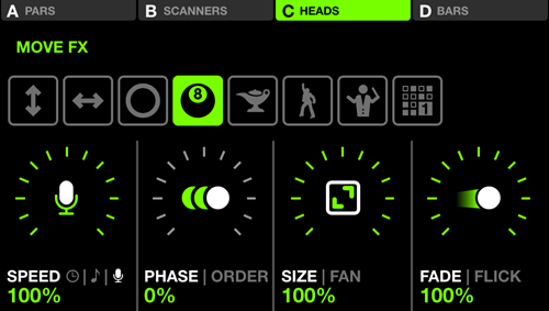 Move FX ¥â¥¸¥å¡¼¥ë¤Ë¤Ï¡¢¥Ñ¥ó¡¢¥Á¥ë¥È¡¢¥µ¡¼¥¯¥ë¡¢¥¹¥¤¡¼¥×¥Þ¥¸¥Ã¥¯¥«¡¼¥Ú¥Ã¥È¤¬¤¢¤ê¤Þ¤¹¡£¸÷«¤òÀð·Á¤Ë¤·¤¿¤ê¡¢¥Ñ¥¿¡¼¥ó¤ÎÃæ¿´ÅÀ¤òư¤«¤·¤Æ¡¢¥¹¥Æ¡¼¥¸¤Î¾å¤ä²¼¤Ë¸þ¤«¤Ã¤ÆºÆÀ¸¤·¤¿¤ê¤¹¤ë¤³¤È¤¬¤Ç¤¤Þ¤¹¡£