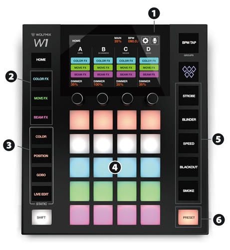 4¤Ä¤ÎÎ󤬤½¤ì¤¾¤ì¾ÈÌÀ¤Î¥°¥ë¡¼¥×¤òÀ©¸æ¤·¤Þ¤¹¡£¥Þ¥È¥ê¥¯¥¹¾å¤Î¥Ü¥¿¥ó¤ò²¡¤¹¤È¡¢¥Õ¥é¥Ã¥·¥å¡¢¥¨¥Õ¥§¥¯¥È¤ÎŬÍÑ¡¢ÀÅŪ¤ÊÃͤÎŬÍÑ¡¢¥Ç¥£¥Þ¡¼¤ÎÊѹ¹¤¬²Äǽ¤Ç¤¹¡£