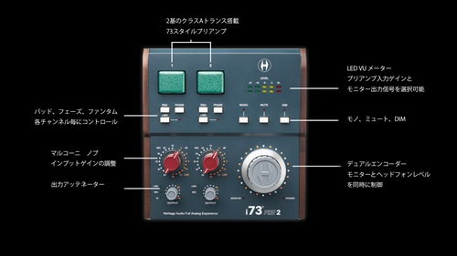 i73 PRO シリーズはミュージシャン、プロデューサー、そしてオーディオエンジニアの方々へ、1970年代初頭から音楽制作にインスピレーションを与えてきた、あの懐かしいアナログ体験を提供することを目指して開発されました。Heritage Audio 社が誇るクラシックな73スタイルプリアンプと同じ、Class-A トランスフォーマーバランス回路を採用。i73 PRO インターフェイスからコンピューターへ、あのクラシックな魅力とアナログレコーディングの黄金時代のバイブレーションを余すことなく捉えてレコーディングできます。