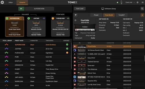 TONEX Editor TONEX Editor は、接続した TONEX Pedal、TONEX One をリアルタイムに調整できる無料のスタンドアローン・アプリケーションです。Tone Model、プリセット、ToneNET を含む TONEX ライブラリ全体にアクセスし、お気に入りのトーンを素早くロードして試聴したり、ペダルの指定されたスロットに保存したりできます。ステージでの TONEX ハードウェア・ペダルのカスタマイズを容易にし、ワークフローを効率化するために設計されています。