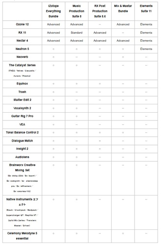 バンドル同梱製品 下記iZotopeバンドル同梱製品よりご確認ください。